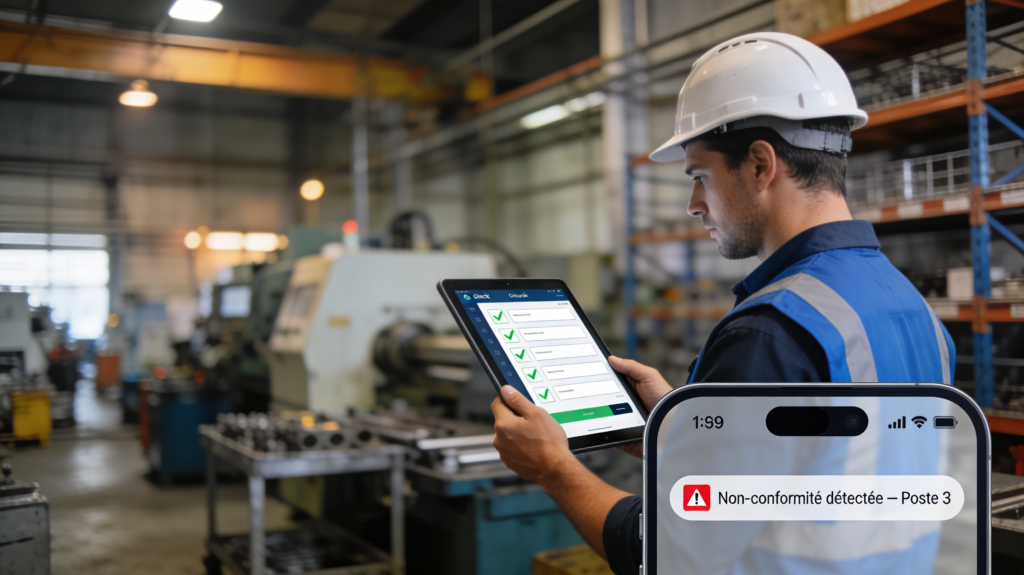 Ce que c’est : Remplacer vos feuilles papier de contrôle qualité, de maintenance et de démarrage de ligne par des check-lists numériques sur tablette ou smartphone. Des outils comme Lumiform, Beekeeper ou même Google Forms suffisent pour démarrer.